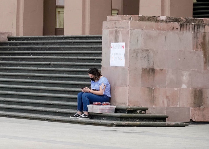 Esta joven no cuenta con el dinero para viajar y por eso ahora vende gomitas con chile. Con 21 años de edad, ella vende sus productos afuera del edificio de Gobierno de Tamaulipas en la ciudad en que nació.