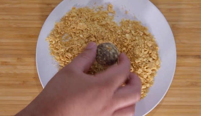 2 . Pasa las bolitas por las obleas trituradas hasta que queden cubiertas.