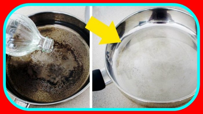 Lo que debes hacer es esparcir sal en toda la olla o el sartén que desees limpiar, luego de esto agrega el vinagre y el jugo de limón y luego procede a fregar la olla hasta que salgan esos molestos residuos y enjuaga como normalmente lo haces.