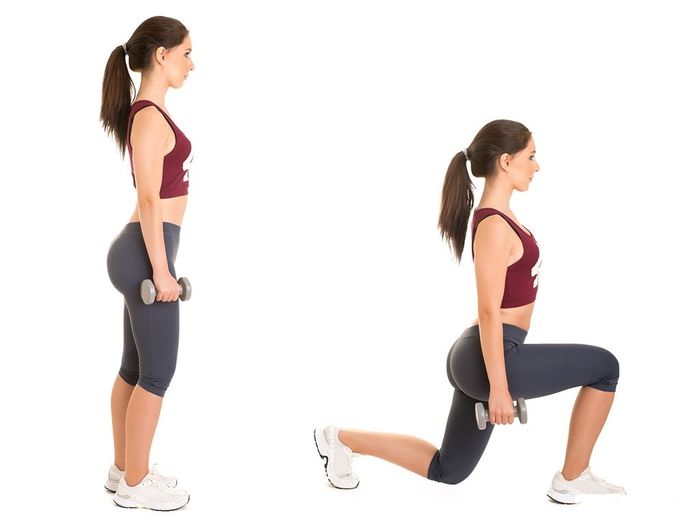 - Da una zancada hacia adelante con una pierna y baja tu cuerpo hasta antes de que tu rodilla toque el piso
