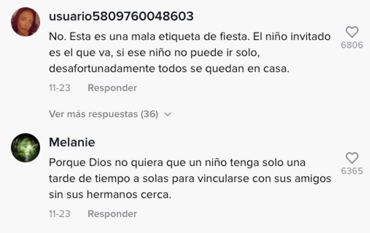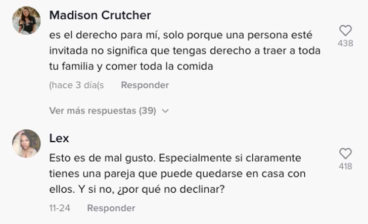 El debate se ha producido en los comentarios de este video con más de 63 millones de visitas donde miles de personas han expresado su opinión al respecto. Algunos felicitan a esta madre por no dejar a nadie de su familia fuera y otros encuentran que es una falta de respeto llevar a quienes no han sido invitados a un evento.