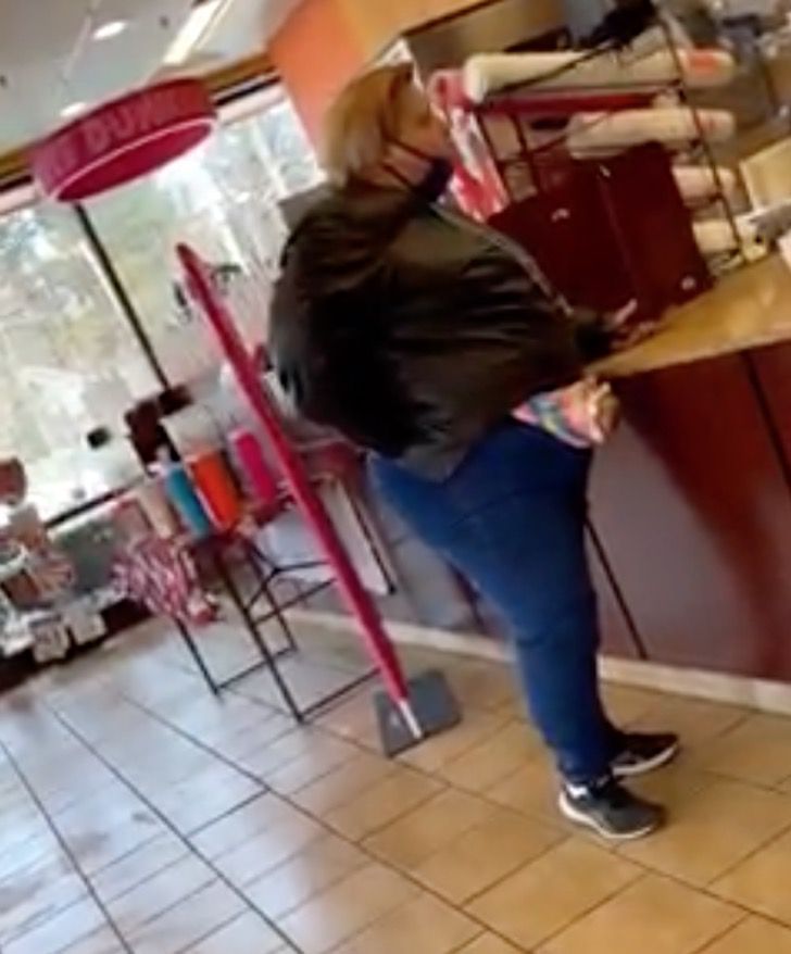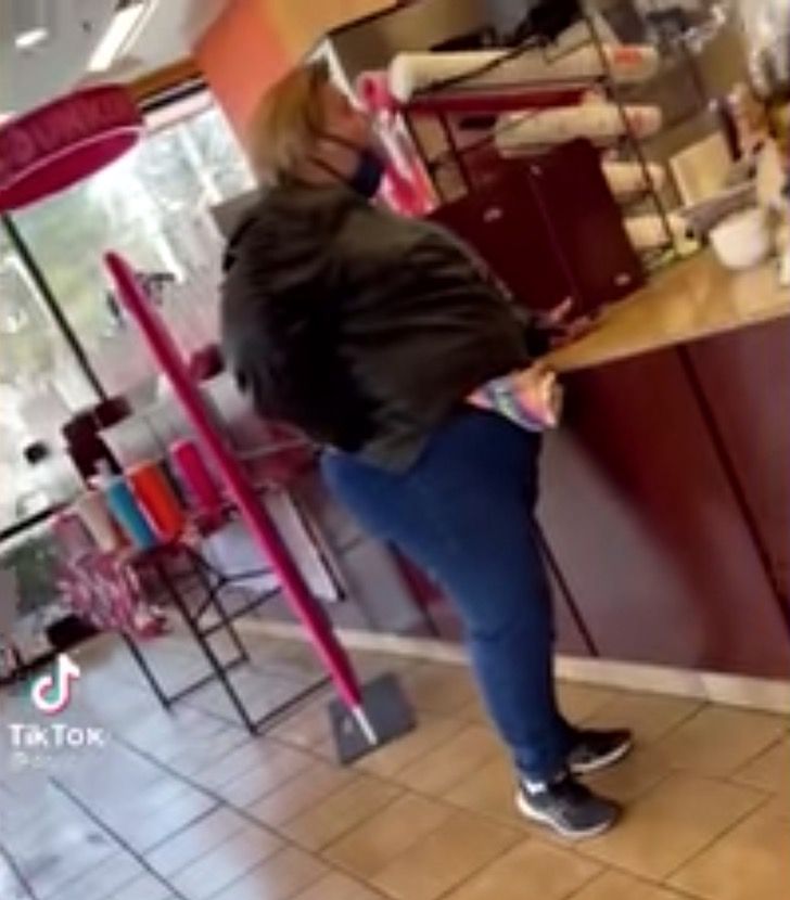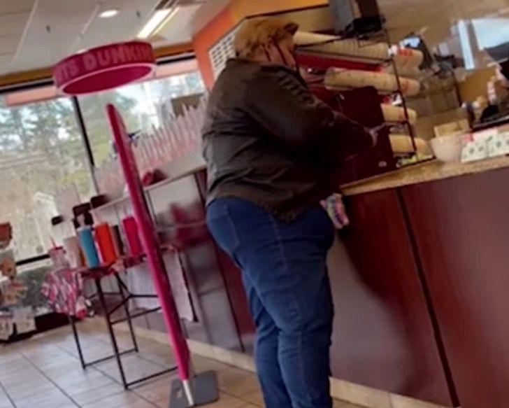 En un local de Donas de Estados Unidos una persona logró grabar el momento exacto en que una cliente reclamaba sin cesar a una cajera exigiendo que le habían dado menos donas de las que había pedido.