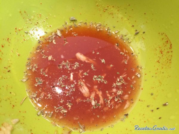 Primero prepararemos el macerado, mezclando el zumo de los limones, el ajo molido, la paprika, el orégano, y sal y pimienta a gusto.