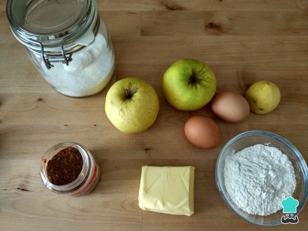 1. Alistar todos los ingredientes para elaborar la tarta de manzana. Utiliza un sartén anti-adherente para evitar problemas a la hora de retirar la tarta.