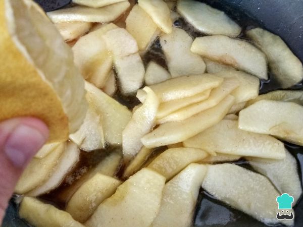 4. Agregar la canela y el jugo de limón. Dejar que se cocinen las manzanas.