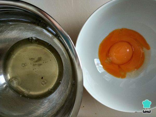 5. Para el bizcocho debes separar las yemas de las claras en dos recipientes diferentes.
