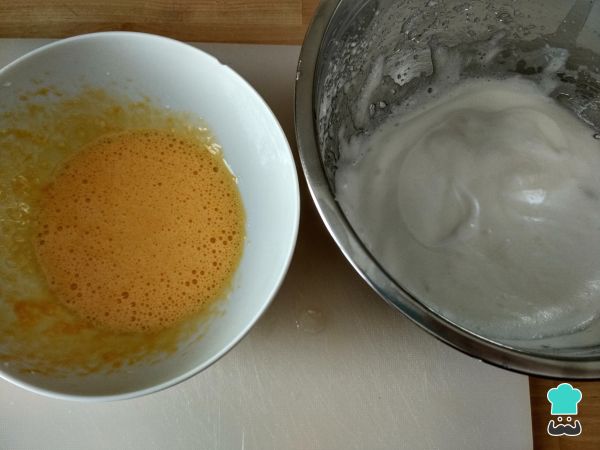 7. Incorporar las yemas a las claras con movimientos circulares.