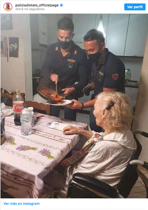 La policía estatal de Italia acudió de inmediato al hogar de la mujer y cumplieron con la tarea asignada. Ella pudo disfrutar de una sabrosa cena preparada por los oficiales.