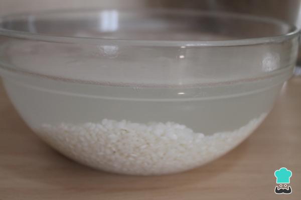 Hierve un litro de agua y remoja en el arroz en esa agua. Déjalo reposar una hora.