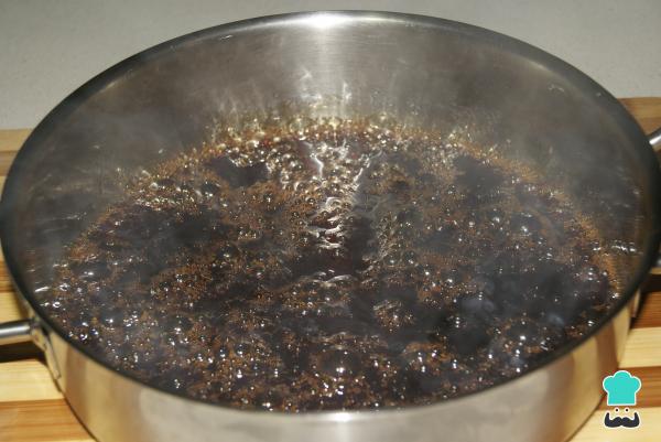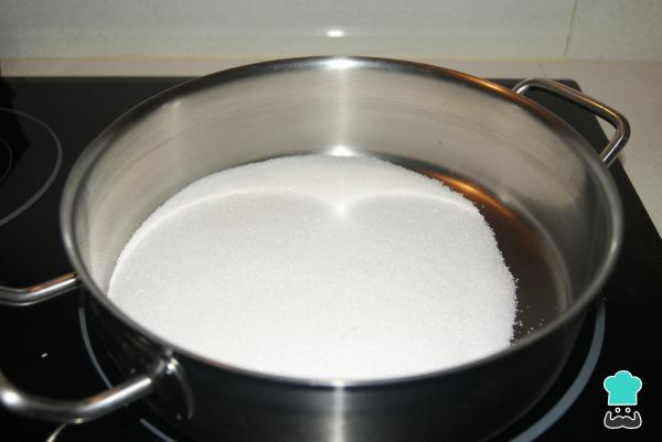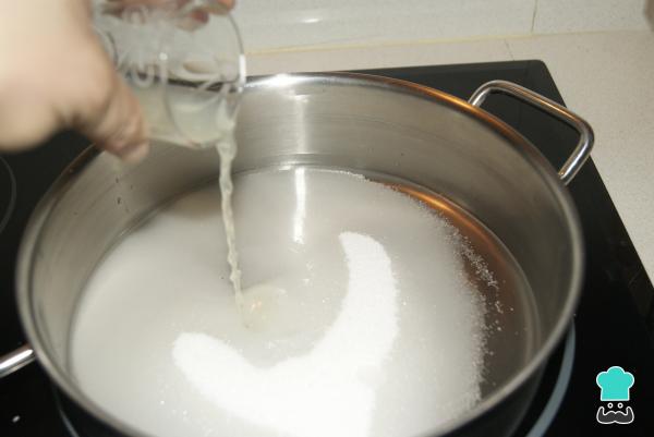 Deja que el caramelo comience a hervir sin dejar de remover. El azúcar debe disolverse en el agua.