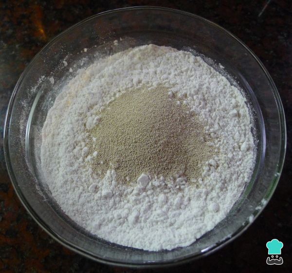 4. Vierte la harina en otro recipiente y añade la levadura.