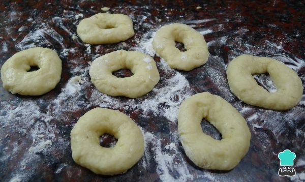 8. Aceita tus manos y comienza a armar las rosquillas, de esta manera no se te pegarán a las manos.