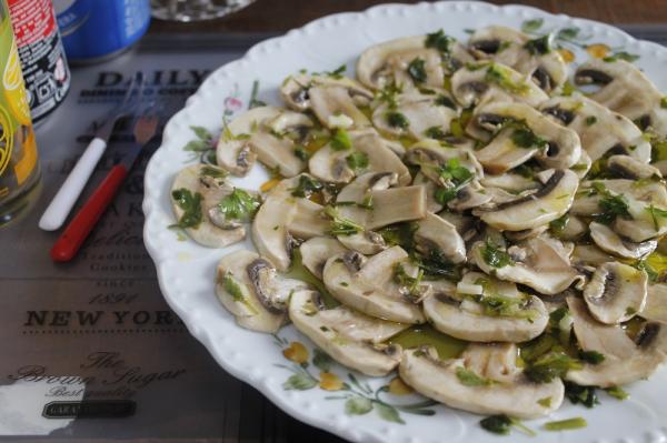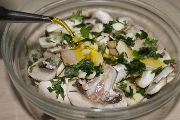 Paso 6: Mezclar los ajos picados y el perejil con los champiñones aliñados. Rociar con aceite de oliva y reservar en el frigorífico hasta el día siguiente y los champiñones crudos en vinagre ya estarán listos para consumir.
