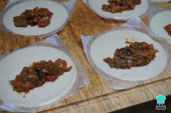 5 . Añade una cucharada de verduras en cada masa.