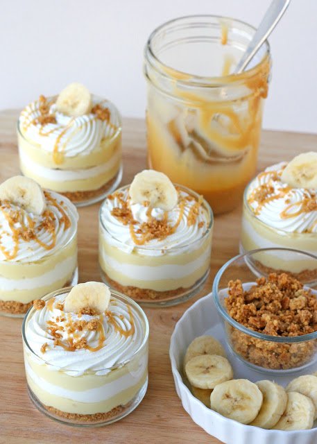Adoramos entregarles recetas de postres que se vean llamativos y de una excelente presentación. Es por eso que cuando vimos esta deliciosa receta de plátano y crema de caramelo, no tuvimos ni una duda en querer compartirla con ustedes. Si quieren sorprender a alguien especial o a la familia completa en alguna celebración de fin de año, acá está la receta perfecta para ello: