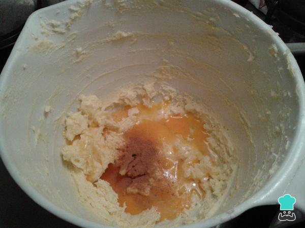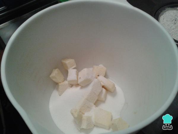 2 . Corta la mantequilla en cubos pequeños y bátela junto al azúcar glass hasta formar una masa cremosa.