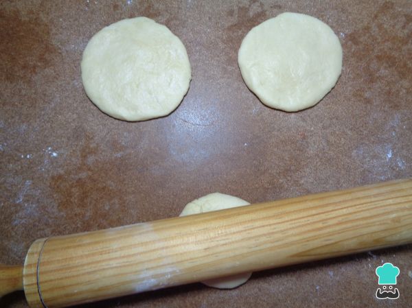 4. Toma porciones de masa del tamaño aproximado de un limón, haz bolitas y con un rodillo aplástalas formando las gorditas de harina. Deben tener un grosor aproximado de medio centímetro.