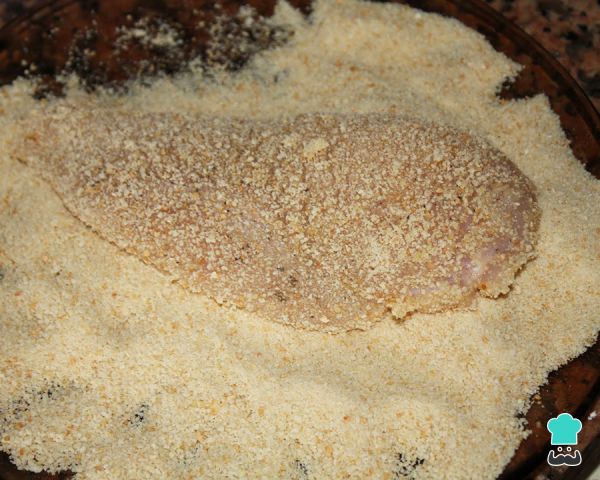 En un recipiente aparte, batir los huevos y bañar los filetes de carne en ellos. Después, para fijar el rebozado de las milanesas, volver a pasarlos por el pan rallado.