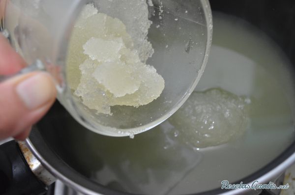 8. Integra poco a poco la mezcla del jugo de piña con grenetina.