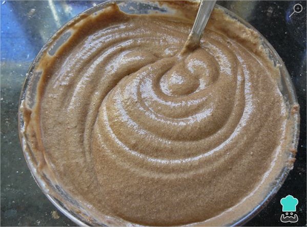 Pon la mantequilla en un cazo y calienta a fuego lento hasta que se haga liquida. Aparte, tamiza el azúcar glass con el cacao y forma un volcán. Entonces vuelca dentro la mantequilla derretida y mezcla todo junto hasta conseguir una pasta ligeramente espesa. Deberás batir el conjunto durante unos dos minutos, añade más mantequilla líquida si hace falta.