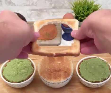 Después, de tostar las rebanadas de pan de molde. Y ahora sólo falta recortarlas con la circunferencia del bol y colocarlas como base de nuestro volcán.