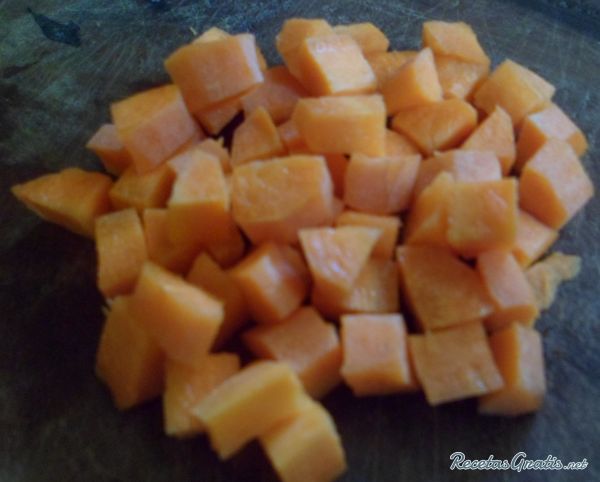 Paso 2: Cortamos la zanahoria en cubos pequeños.