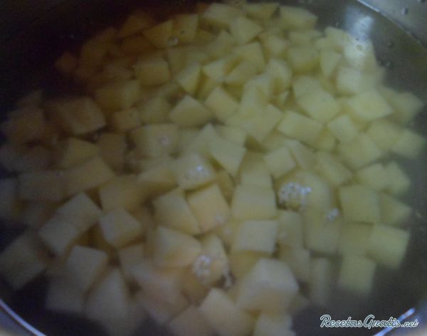 Paso 5: En una olla aparte cocinamos las papas por espacio de 4 minutos aproximadamente, dependiendo del tamaño de las mismas, y cuidando que no se pasen de cocción.