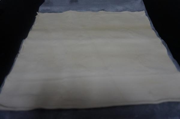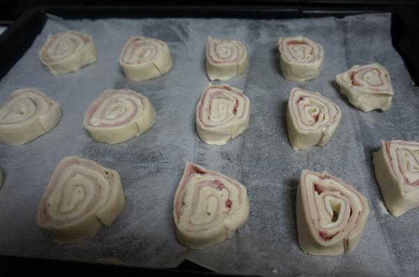 2. Cubre la masa de hojaldre con una capa de jamón york.