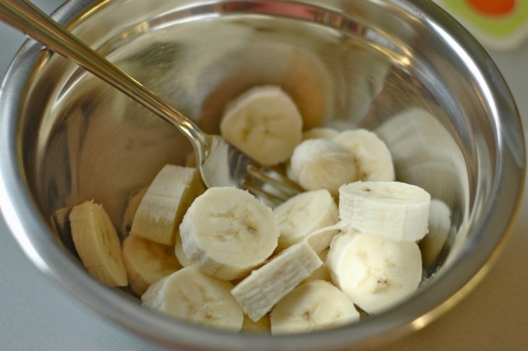 3. En un recipiente muele los plátanos con un tenedor hasta obtener una pasta.