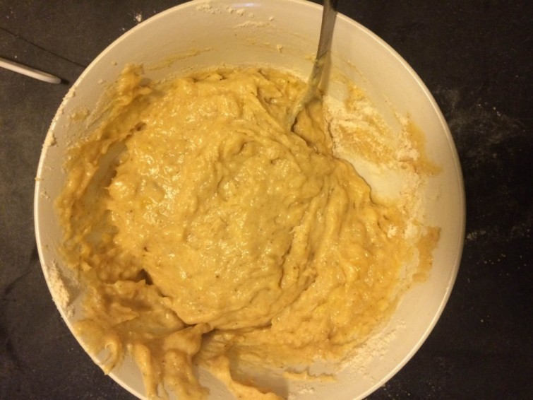 7. Vierte en el molde y hornea durante 1 hora y 10 minutos a 175ºC.