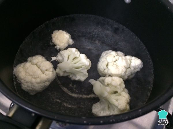 1. Lo primero es cocinar la coliflor en una olla con agua hirviendo durante 10 minutos. Luego escurre y reserva.