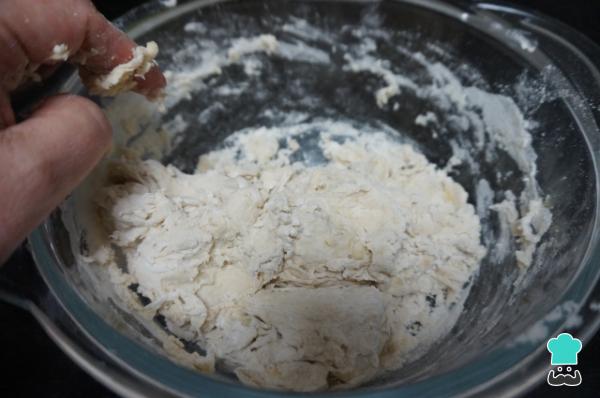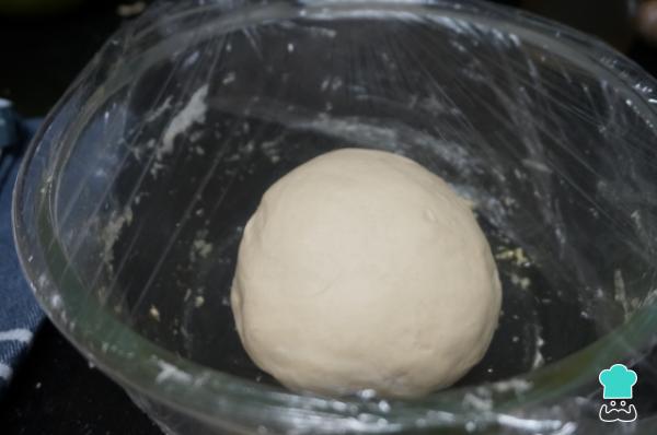 Forma una bola de masa y ponla en un bol con un paño encima para que repose por una hora y media.