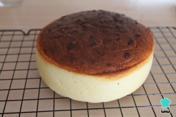 Desmolda el pastel japonés y ponlo sobre una rejilla para que enfríe. La parte dorada debe quedar hacía arriba.