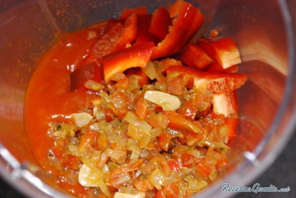 Si estas pensando hacer una lasaña, te aconsejamos que guardes un poco de este sofrito para hacer la carne. Sigamos con la salsa de tomate, el siguiente paso es licuar el sofrito con el resto del pimentón y el tomate frito.
