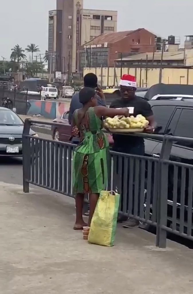 Un video que compartió @Euginearinda en Twitter muestra como una mujer embarazada que vende naranjas en la calle, al lado de una autopista recibe un hermoso regalo de navidad por parte de un hombre que compra todas las naranjas que ella vendía.