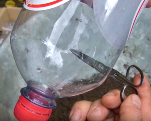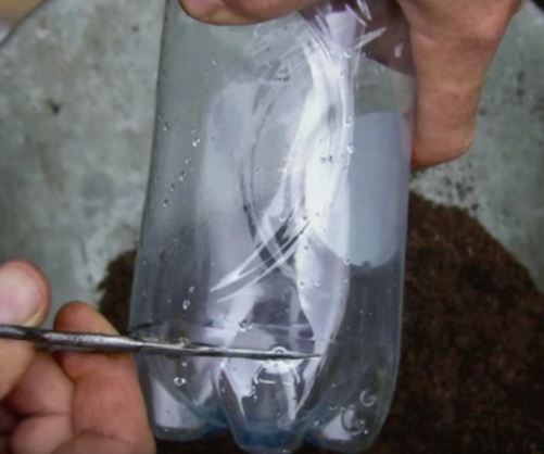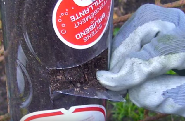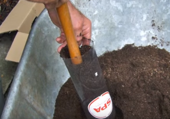 Corta el fondo de una botella sin tapa y llénala de tierra abonada