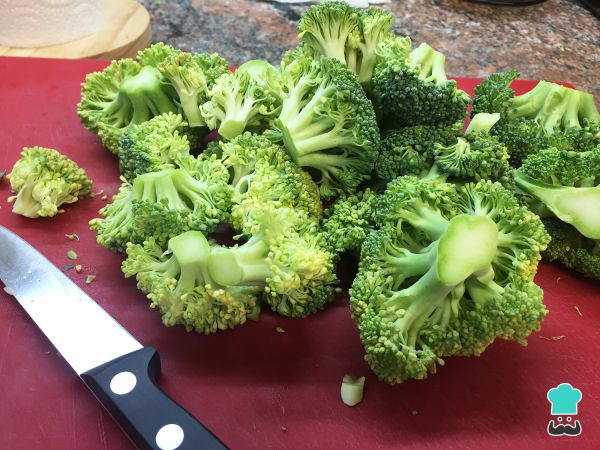 1. Lavar el brocoli y cortarlo en arbolitos. El tallo central se puede guardar para elaborar un caldo de verduras.